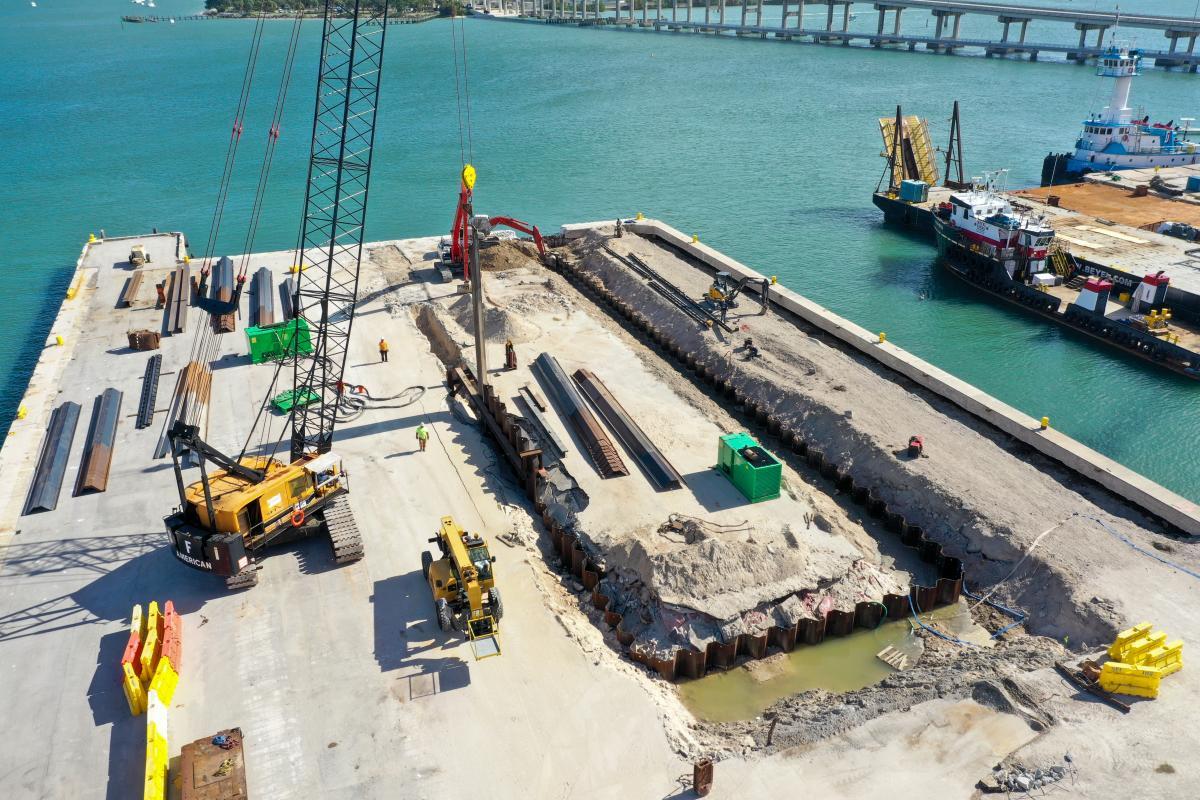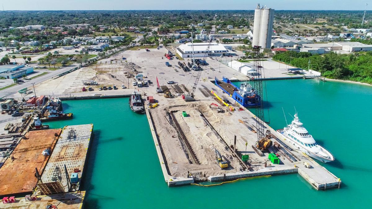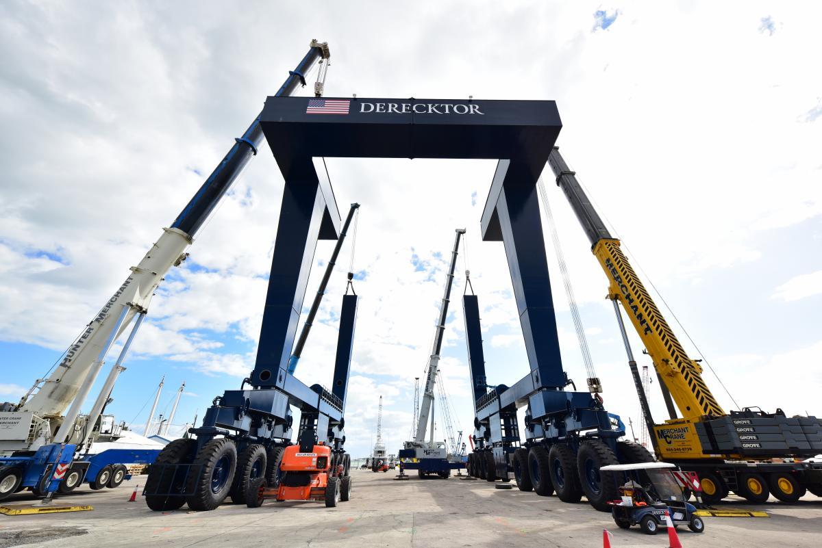 According to Derecktor, construction of the haul-out basin, utility loop, bulkhead repairs, and workshop are scheduled to be completed by May 2021. Assembly of the 1,500-ton mobile boat hoist –with a capacity 2/3 greater than the one housed at the Dania Beach facility – is underway and will run concurrently with construction. Hauling operations at the 12.5-acre facility are scheduled to begin in spring 2021.