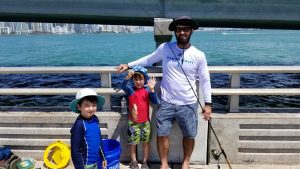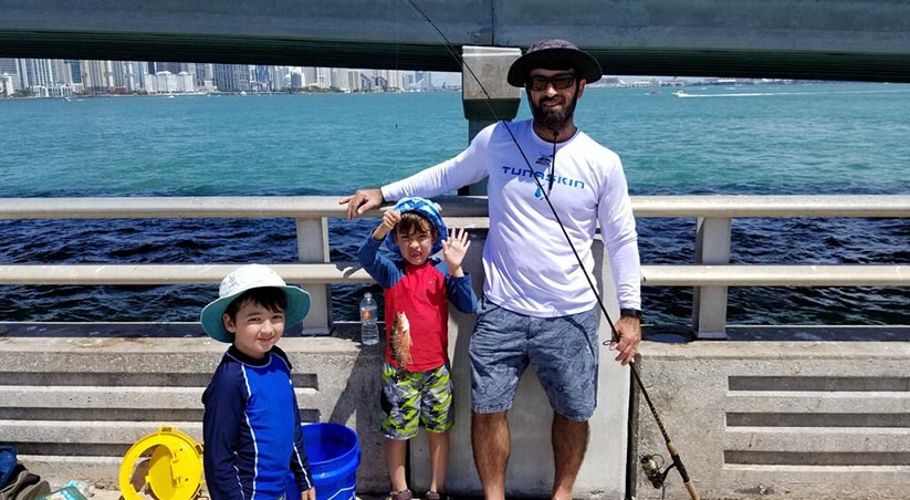 JT fishing with his sons Oliver and Maximus