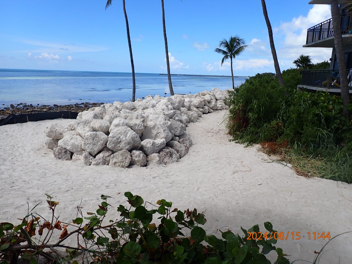 Bennco Engineering provided coastal engineering and environmental consulting services to the 1800 Atlantic Condominium located in Key West, Florida. The project involved stabilization of the 450 ft of shoreline fronting the Condominium. Bennco Engineering conducted a coastal engineering analysis to inform design of coastal protection structures, which included a series of nearshore revetments that were backfilled with the beach compatible sand. Bennco Engineering also secured the environmental permits for the project from the FDEP and USACE. Construction support services were provided to include bidding, preconstruction coordination, milestone-based administration, project closeout, reporting, certification, and a quality control survey. Bennco Engineering conducted site visits, reviewed contractor data, and ensured compliance with permit conditions.