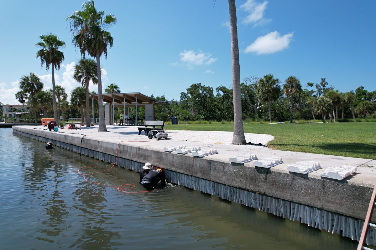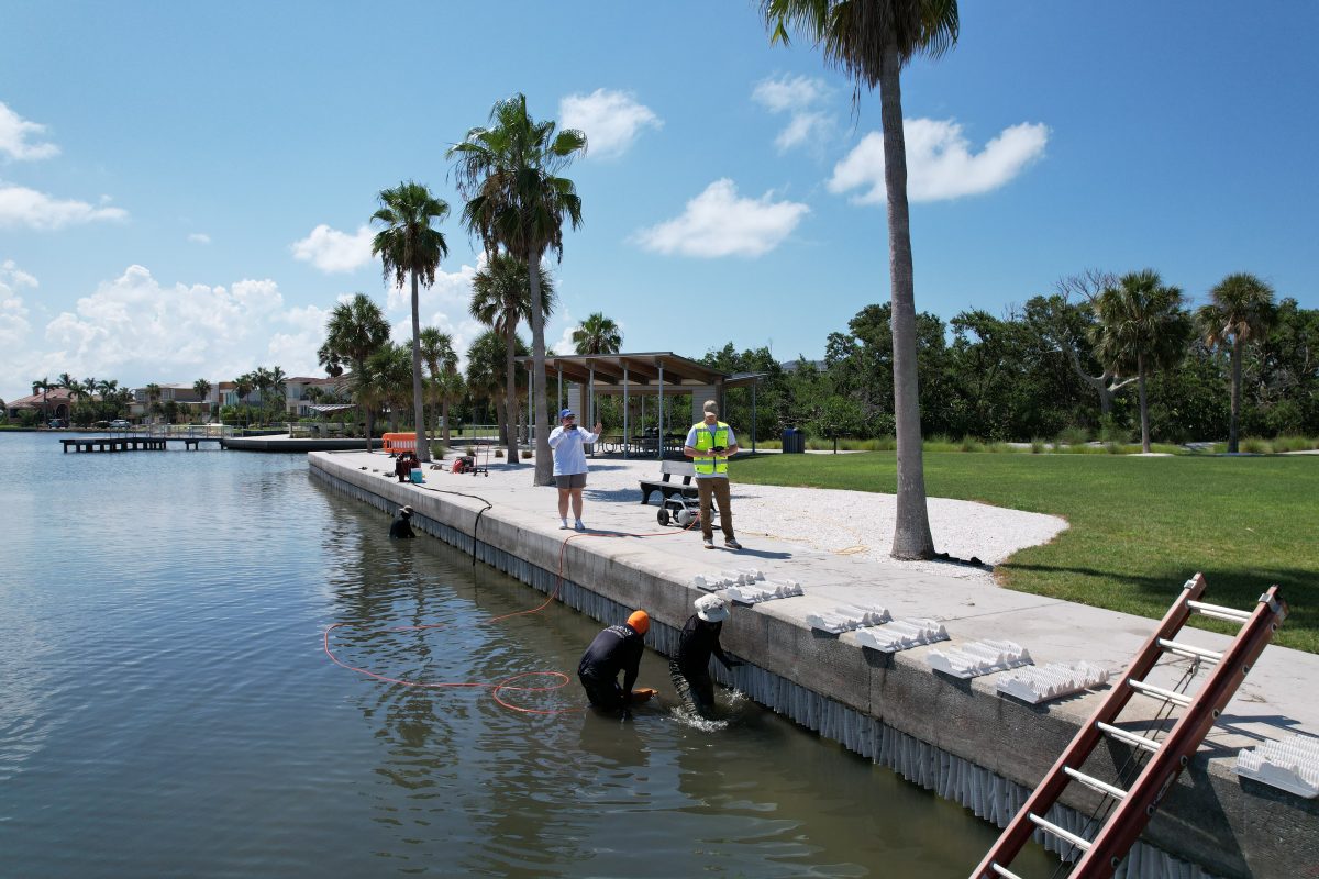 Bennco Engineering served as the Engineer of Record (EOR) for the Longboat Key Bayfront Park Living Seawall project, a pilot initiative in partnership with the Sarasota Bay Estuary Program (SBEP). The project involved the installation of approximately 350 living seawall tiles along an existing vinyl sheet pile seawall at Bayfront Park. Bennco Engineering’s role was critical, involving the permitting, engineering analysis and design of the reef tiles.