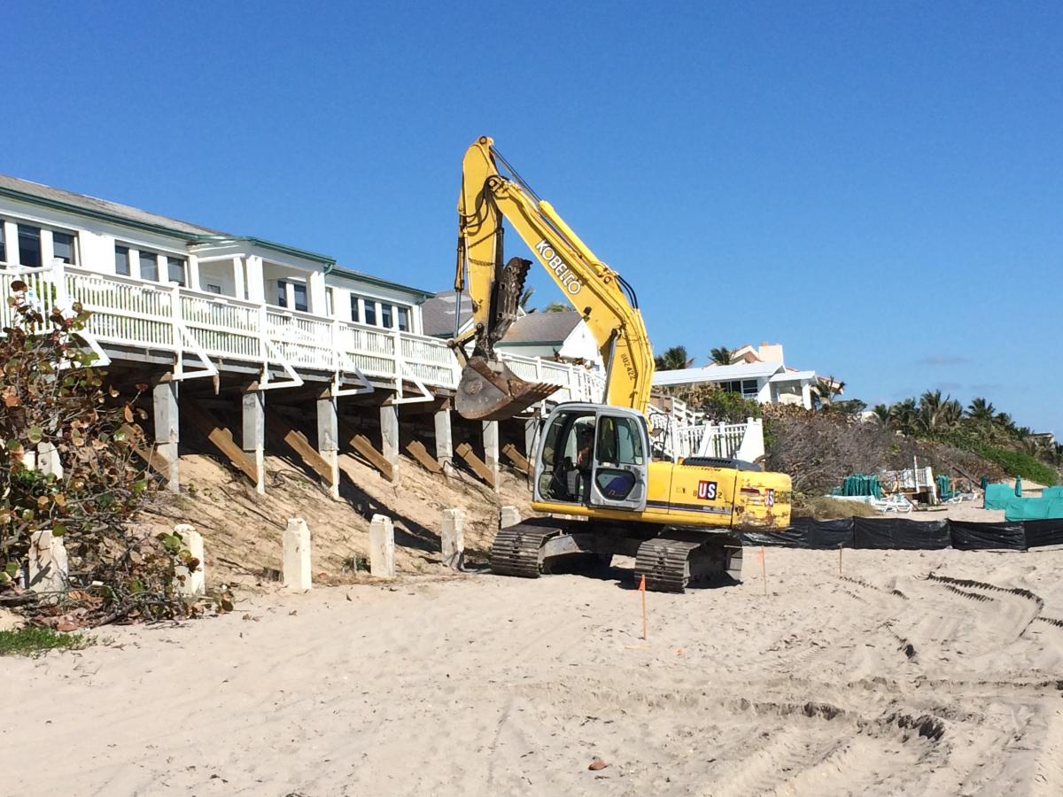 To restore a larger segment of the beach, a 375,000 cy beach nourishment project was planned, designed and permitted. The project required extensive coordination and negotiations with environmental permitting agencies due to the presence of nearshore marine resources.