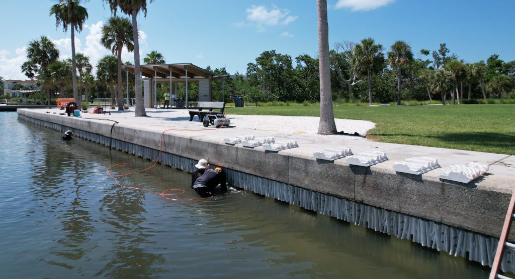 At the ribbon cutting, Associate Principal Jenna Phillips, participated on behalf of Bennco Engineering and highlighted the technical rigor behind the installation. “Our role went far beyond placing habitat tiles on a wall,” said Phillips. “We applied advanced coastal modeling and structural analysis to understand how these units would behave under real storm conditions. That engineering foundation is what makes the ecological component possible, giving the tiles the strength to perform while creating space for a healthier, more resilient Sarasota Bay.”