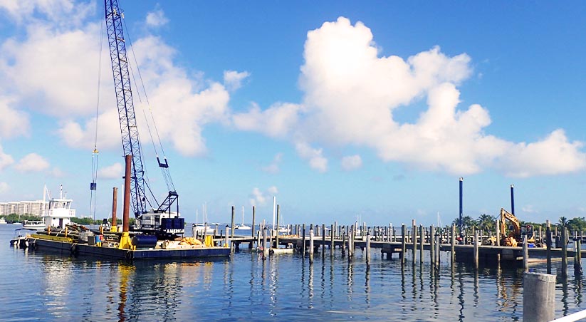Construction is underway on the repairs to the eminent Dinner Key Marina. Fronting Biscayne Bay in historic Coconut Grove, the Dinner Key Marina is one of the largest wet slip marinas in Florida, as well as the eastern U.S. The marina suffered significant damage in Hurricane Irma to all 9 piers, impacting approximately 60% of the dockage. The municipal owned marina is slated to be restored to its original operating capacity, serving over 580 slips.