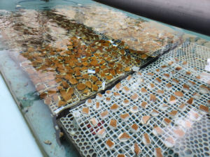 Microfragmented coral colonies collected from the Port Everglades jetty in the NSU on-shore nursery awaiting outplanting