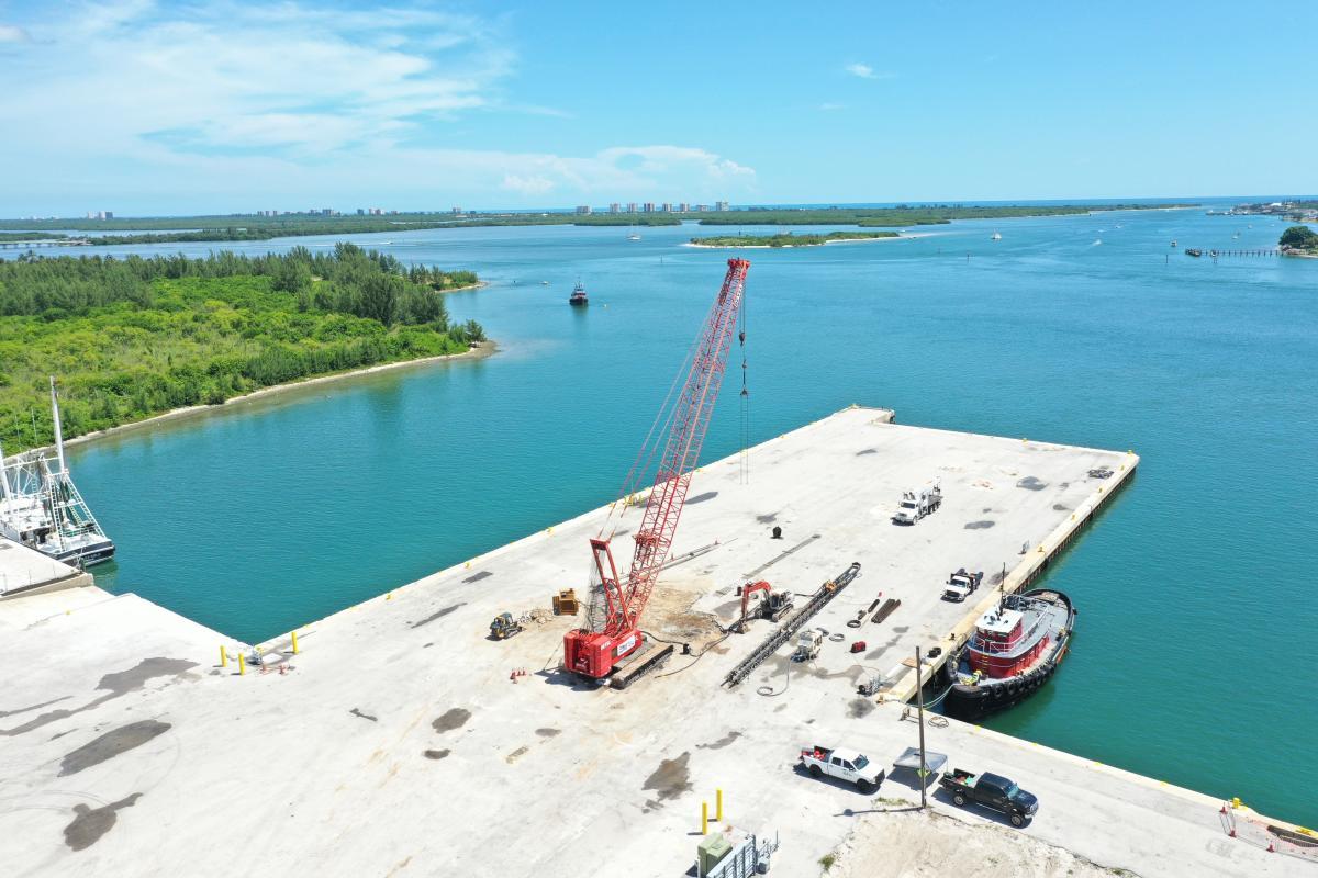 According to Derecktor, construction of the haul-out basin, utility loop, bulkhead repairs, and workshop are scheduled to be completed by May 2021. Assembly of the 1,500-ton mobile boat hoist –with a capacity 2/3 greater than the one housed at the Dania Beach facility – is underway and will run concurrently with construction. Hauling operations at the 12.5-acre facility are scheduled to begin in spring 2021.